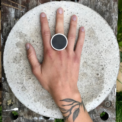 Tvåfärgad ring gjord av sterlingsilver - fylld med resin. Storlek Mega