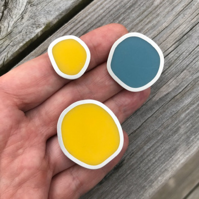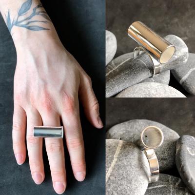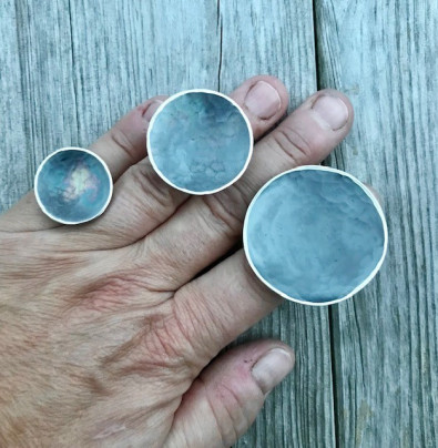 Enfärgade assymetriska ringar gjorda av sterlingsilver - fyllda med resin.