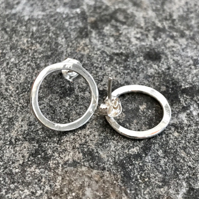 Runda örhängen med stift gjorda av sterlingsilver. Diameter ca 15 mm.