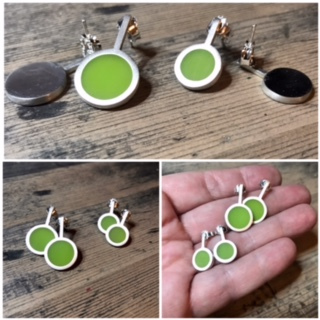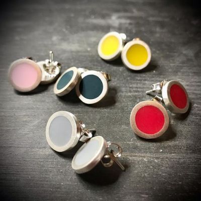 Färgglada örhängen med stift. Gjorda av sterlingsilver, fyllda med resin.