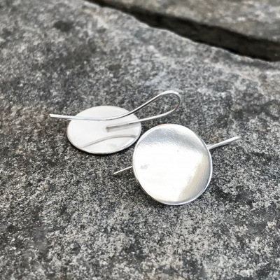 Runda platta örhängen med krok - gjorda av sterlingsilver.