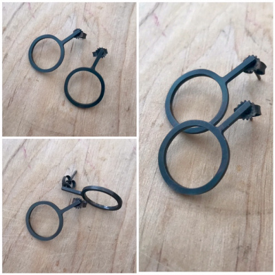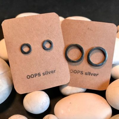 Runda örhängen med stift gjorda av oxiderat sterlingsilver.